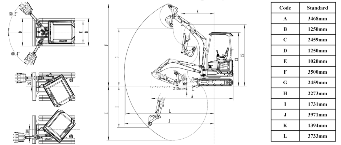 | Maximaler Schwenkradius: | 3260 mm |
