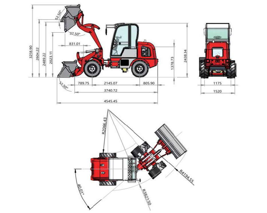 | Gesamtlänge (mit Standardschaufel): | 4545 mm |