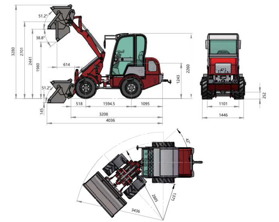 | Gesamtlänge (mit Standardschaufel): | 4036 mm |
